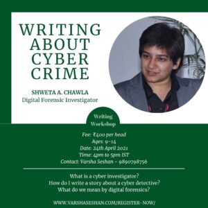 During my writing programme last year, I met many children who wanted to write detective stories. What would a detective story involve? How did investigations really happen?This got me thinking.What could I do that would be new and unusual? I've never solved a crime. I have no inside knowledge. And if children (and I!) don't want to write about smugglers and private islands and the like, what detective stories can we write?My answer was cyber crime. And that led to the very first guest session of my creative writing programme. About the Facilitator Shweta A. Chawla is an independent digital forensic investigator with over 15 years of experience in digital forensic and cyber investigations. She is the founder and chief investigator at SC Cyber Solutions, and has acted as consultant to various police departments in investigations into cyber crimes. Shweta is … [Read more...]