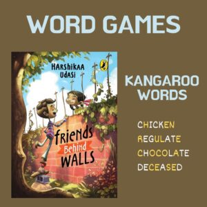 When I wrote about using Friends Behind Walls for my online reading programme, the first thing I thought of doing was playing with words. Putti loves breaking words up to make sense of them. Brouhaha = brew+haha, but has nothing to do with brewing tea or being funny.Yesterday, we thought of words like this. We thought of 'unfortunately' and 'perspective', as we hunted for humorous ideas."Is 'guin' a word?" one child asked me. Of course he wanted to do something with what a penguin is not.One idea led to another and we came to kangaroo words. I'm not good at coming up with these, but I love the idea! A kangaroo word is one that carries a synonym of itself in the word.We discussed just a handful in class - masculine contains the word male, blossom contains the word bloom, chicken contains the word hen. "I know this is difficult," I told the children, "but see if you can think … [Read more...]