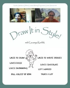 We had nearly twenty participants during the first guest session of the season, an illustration workshop with Lavanya Karthik!Focusing particularly on her Dreamers series, Lavanya talked about her creative process, and how she chose various art styles for different books. The idea of the session was to get participants to work towards creating a self-portrait. To do this, she introduced three styles that she researched and used in her books--miniature Mughal art, which she brought into The Boy Who Loved Birds, Bhil art, which features in The Girl Who Loved to Sing, and mosaic art, which you can find in The Boy Who Built a Secret Garden.Step by step, she led the participants towards the final activity, asking them to list personality traits, choose a symbol or motif that represents them, and work on an elaborate frame, drawing from miniature paintings. We didn't have much time to … [Read more...]