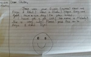 Yesterday, to round off our letter-writing activity, we wrote two more letters.One began with 'Dear Reader', and this is an activity I've done more times than I can count. I tweaked it slightly this time because of the idea of posting their letters to them. Instead of telling them that what they wrote would go into books in the library, I told them their letters would go in the mail to someone else in the room. They enjoyed it tremendously!(Here is an explanation of the activity, plus a link to a video you could use.)The second was a letter to a fictional character. I asked the children to choose any fictional character they love, and write a letter, sharing whatever they liked with that character. Among all the letters to Hermione Granger, Tom Gates, Silky (Faraway Tree) et al, here's one letter I found:I couldn't stop chuckling at this! Of course, I'm thrilled … [Read more...]
