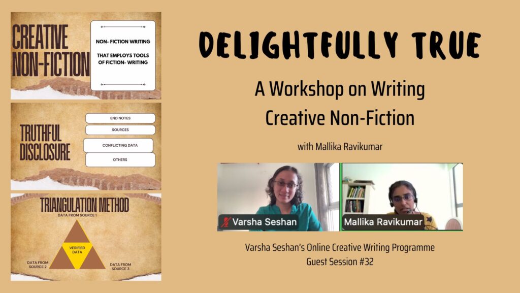 At the end of the session, lots of participants who had read Mallika’s books had questions for her, which was heartwarming! She left them with an exercise that explores perspective and technique, which I hope will give them firsthand experience of how engaging creative nonfiction can be!