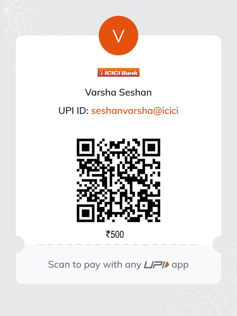 - Pay via UPI to seshanvarsha@icici or the number in the form below