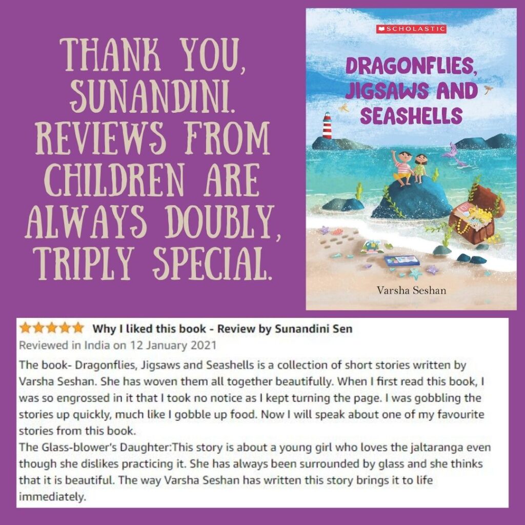 So when Idliamma eats Timmi’s idlis, we know that it’s Idliamma who ate them, not a pretend creature. Her giant friend opens the window to let the rain in, not Timmi. I love it!