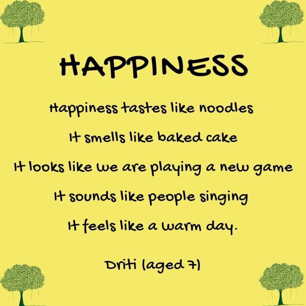 Being conscious of smells around them creates a moment’s pause too. Once more, the children have the space to get creative as they describe what’s in the air.