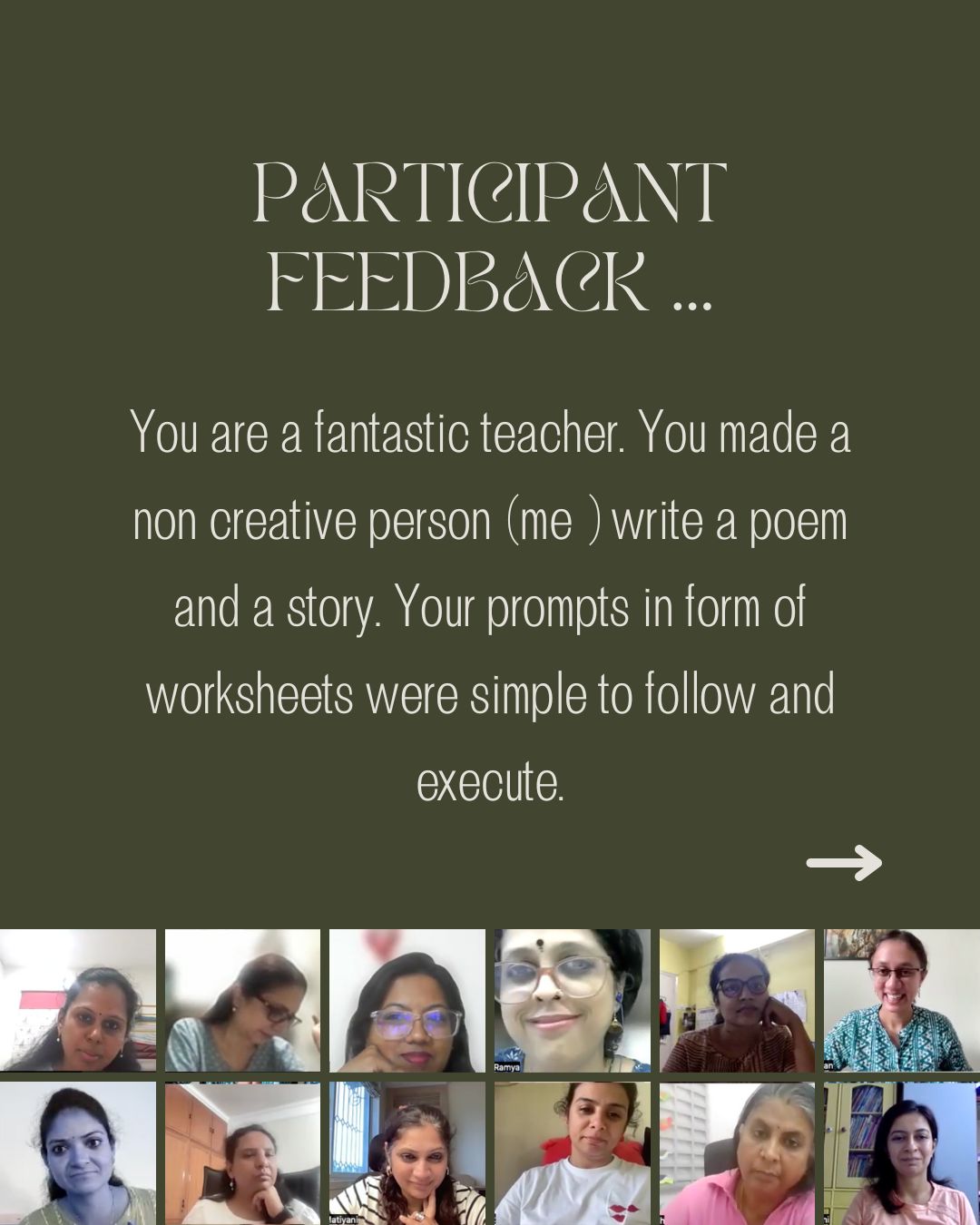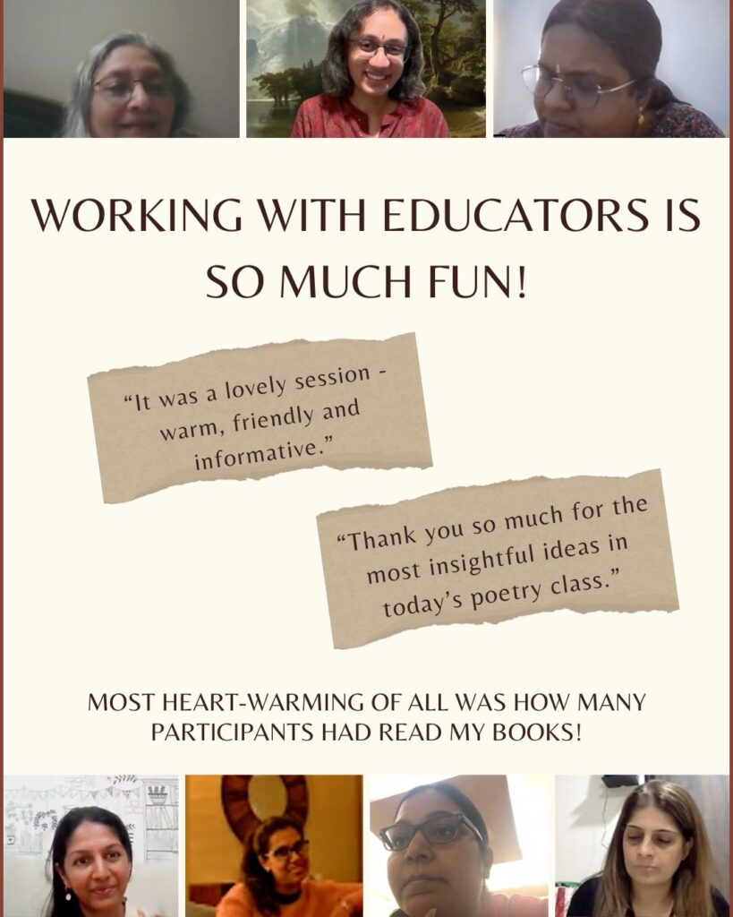 Since I enjoy teaching creative writing so much, I decided to see whether I could help other teachers work with it too. I’ve conducted four workshops so far, and the response I received for each one has been heart-warming. In 2026, I hope to continue to conduct these sessions, perhaps once in two months, or once every quarter!
