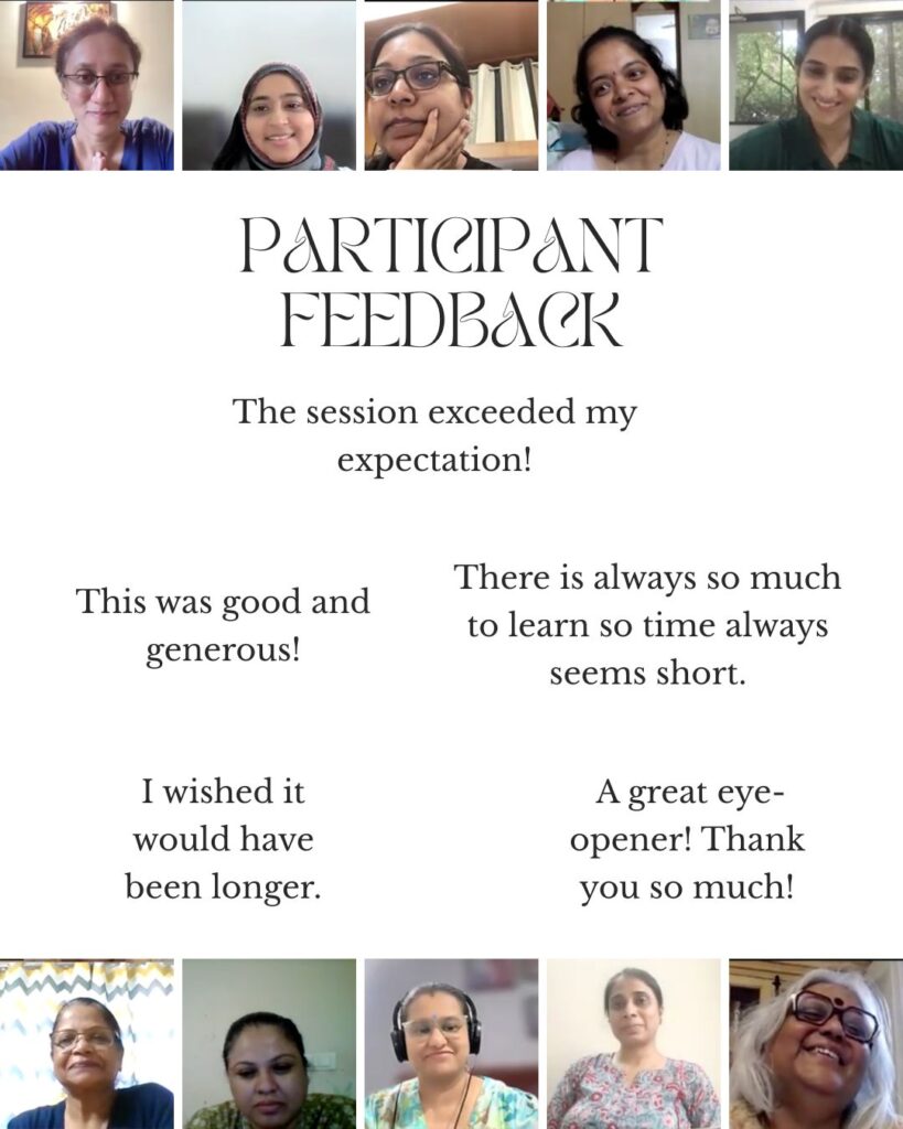 New online workshops begin every alternate month, and I’m always open to looking at offline workshops should schools require them. If you would like to receive email notifications about my programmes, please fill this form. Alternatively, follow me on social media – Facebook and Instagram – for regular updates.