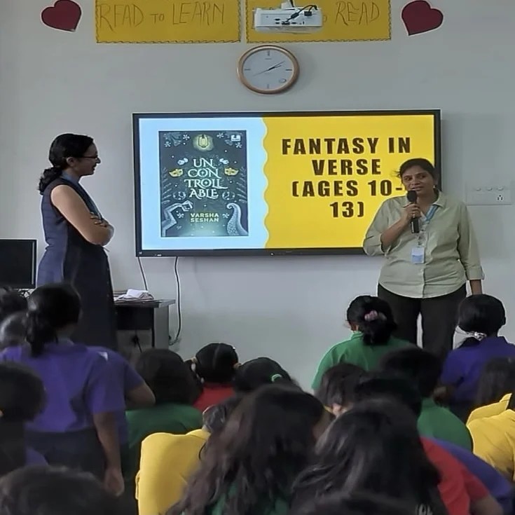 The fact that I cannot remember how many schools I visited in 2023 says a lot! Sharada Mandir in Kadamba, Mahindra International School and Dr Dada Gujar English Medium School in Pune, VIBGYOR, One World International and Redbridge Academy in Bengaluru, Bombay International School in Mumbai … I took my books all over the country last year. This was in addition to events at Crossword (Pune), Funky Rainbow (Bengaluru) and Kahaani Box (Bengaluru). I did online interactions too, notably one for the Neev Literature Festival because my book, Sisters at New Dawn, was part of their reading challenge this year.