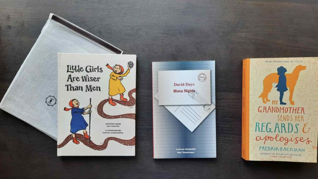 My Grandmother Sends Her Regards and Apologises turned out to be such a sweet book! I’ve placed it on a set of books of fairy tales for this picture because fairy tales are intrinsic to the story. In some ways, the book is a fairy tale in its own right.