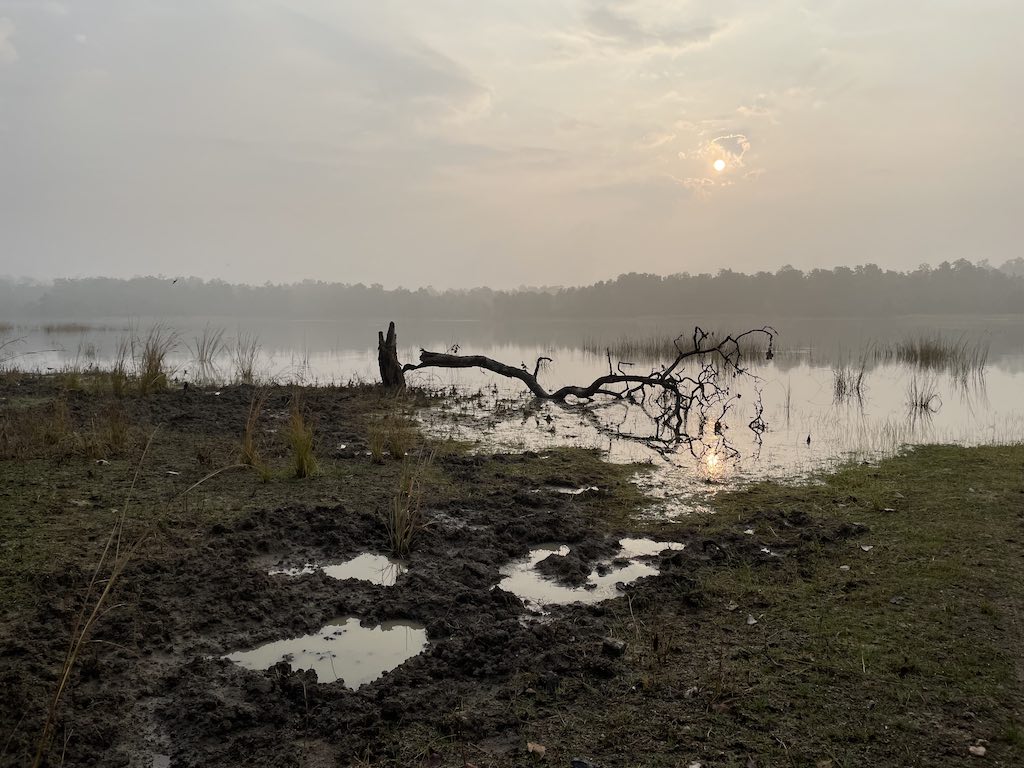 It was incredible. We stood at Bakhari Camp and watched the rain pour down on huge teak leaves. We shivered with cold, delight, anticipation … When else would we spend so much time standing and gazing at a forest? Someone made lemon tea for us, and we watched the world.