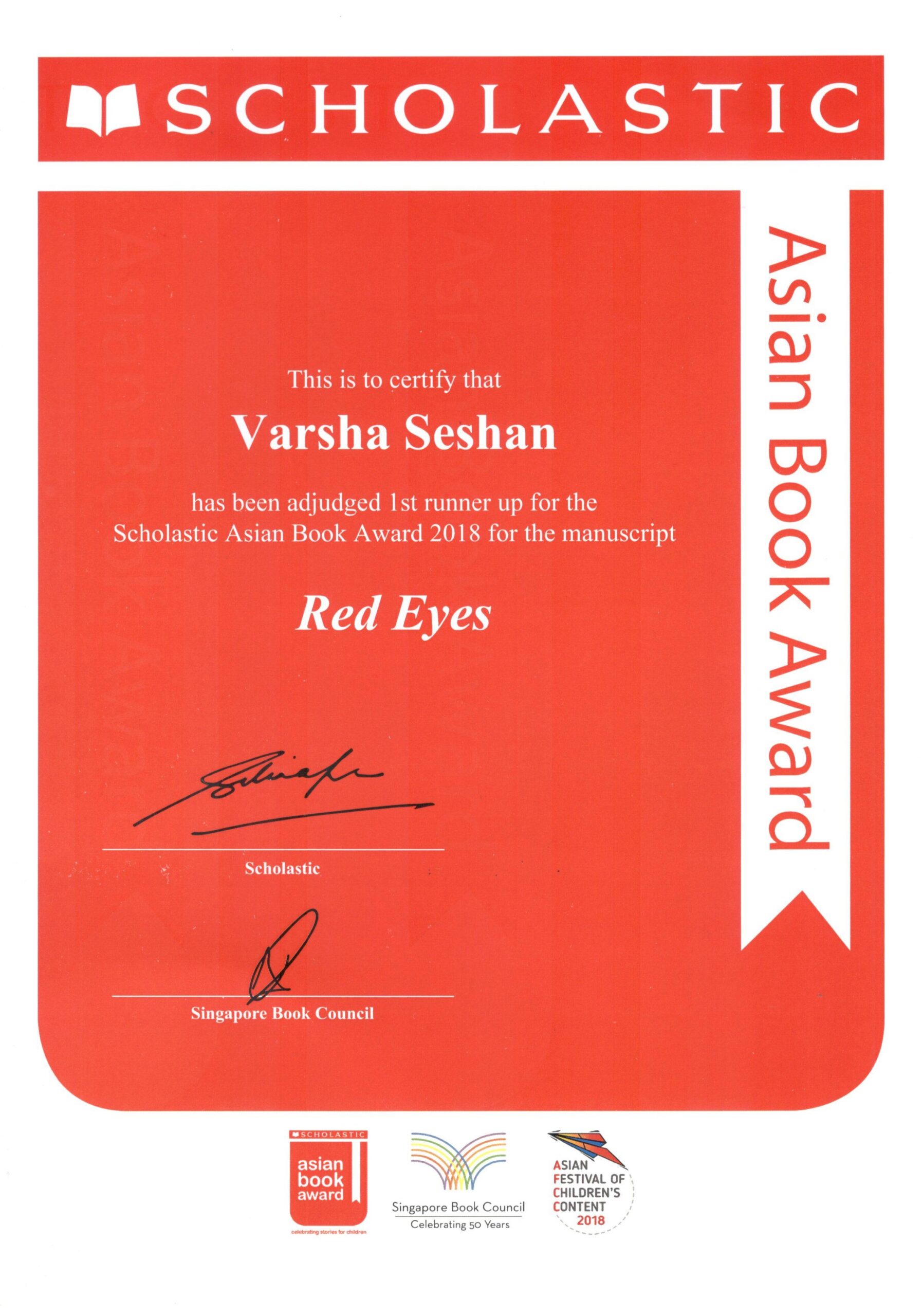 - First runner-up for the Scholastic Asian Book Award 2018