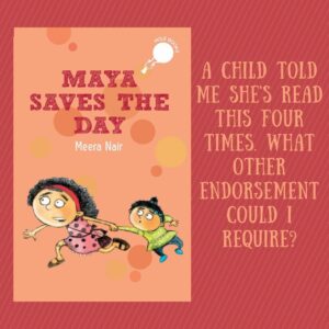 Earlier this month, we read Maya in a Mess at my reading programme, and one child volunteered, "I've read the book that comes before Maya in a Mess.""Did you like it?" I asked.She nodded. "I read it four times."Now, if that isn't endorsement, I don't know what is!I enjoyed Maya Saves the Day thoroughly too! What I loved most about it is that it is told entirely from the point of view of a child who is a bundle of contradictions. On the one hand, she has all kinds of fears. She's scared of crows, whooshing mango trees and dark places. On the other hand, she's completely secure - when she's separated from her parents at a mall, she does not become afraid. Instead, she's angry with her parents for being so careless as to get lost.Maya is a very special combination of humour, solemnity and madness. In the same way as she cries MAYDAY! in Maya in a Mess, we find a confident girl here … [Read more...]