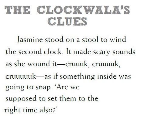 The third shop in Tipu Gully, Clockwala Clocks, is completely fictitious, but the truth is that I’ve always been fascinated by clocks of all kinds. There was a time when, at home, we had more than one clock in each room. My grandmother in Bangalore had a winding clock, and later, we got one too. A winding clock is special!