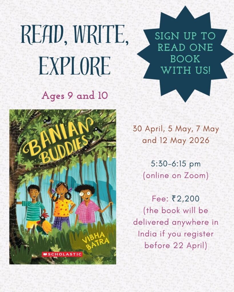 The April 2026 edition of Read, Write, Explore is sold out! New batches begin every alternate month. Join my mailing list if you would like to receive email notifications about my programmes. Alternatively, follow me on social media – Facebook and Instagram – for regular updates.
